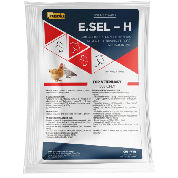 Support to prevent reproductive diseases caused by lack of Vitamin E, Biotin and Se in cattle and poultry such as: embryonic death, dry fetus, miscarriage.